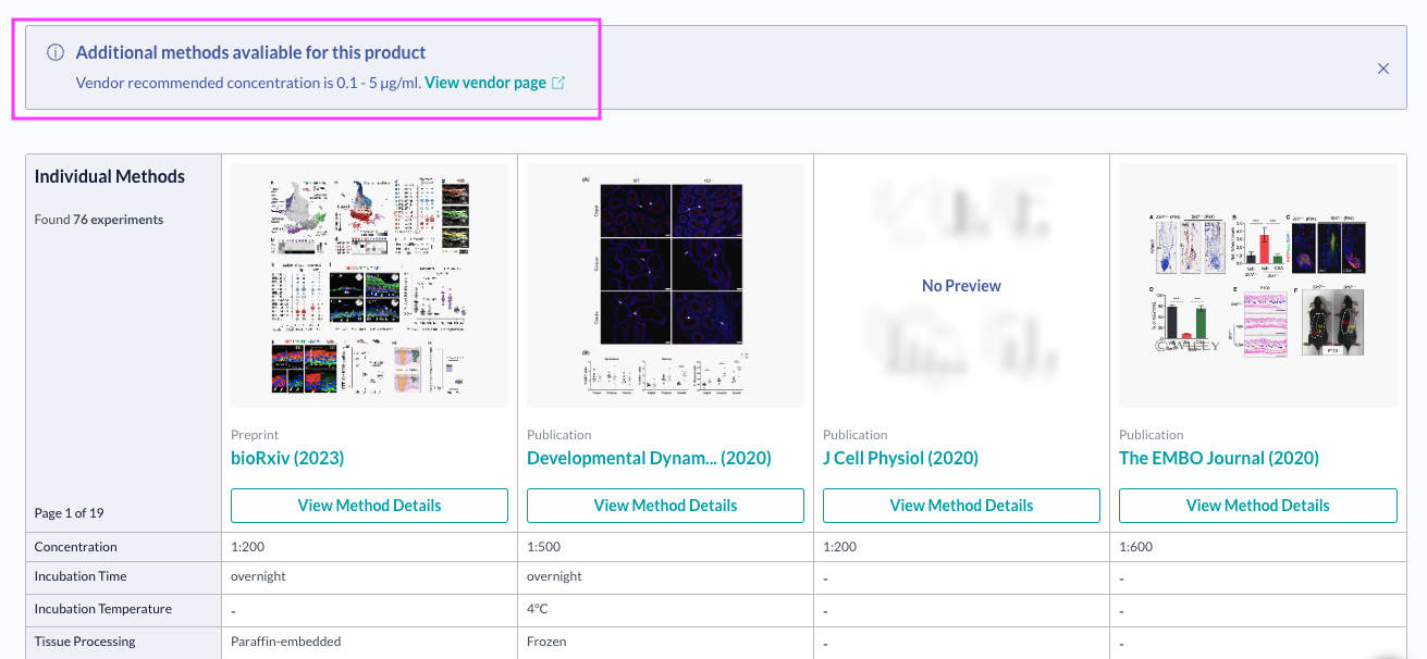 Many vendors provide detailed methods data on their website or datasheet, outlining the recommended steps and conditions to use those reagents/model systems most effectively in an experiment. These methods can include information such as recommended storage conditions, sample preparation methods, and experimental conditions such as dilution concentrations.