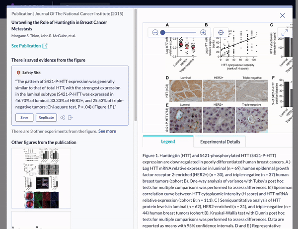 Save and consolidate evidence of interest, such as publications, abstracts, and data from third-party sources (e.g. FDA, OMIM, MGI) directly to a Saved Evidence page. This simplifies the process of tracking relevant evidence across your searches so you can easily review them at a later time.