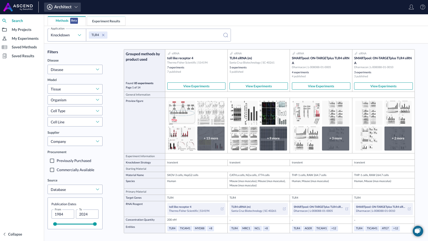 The methods function in Architect enables scientists to build optimized experiment plans. We have expanded our offering to include methods details for Knockdown experiments, empowering scientists to surface protocol information pertaining to RNAi experiments.